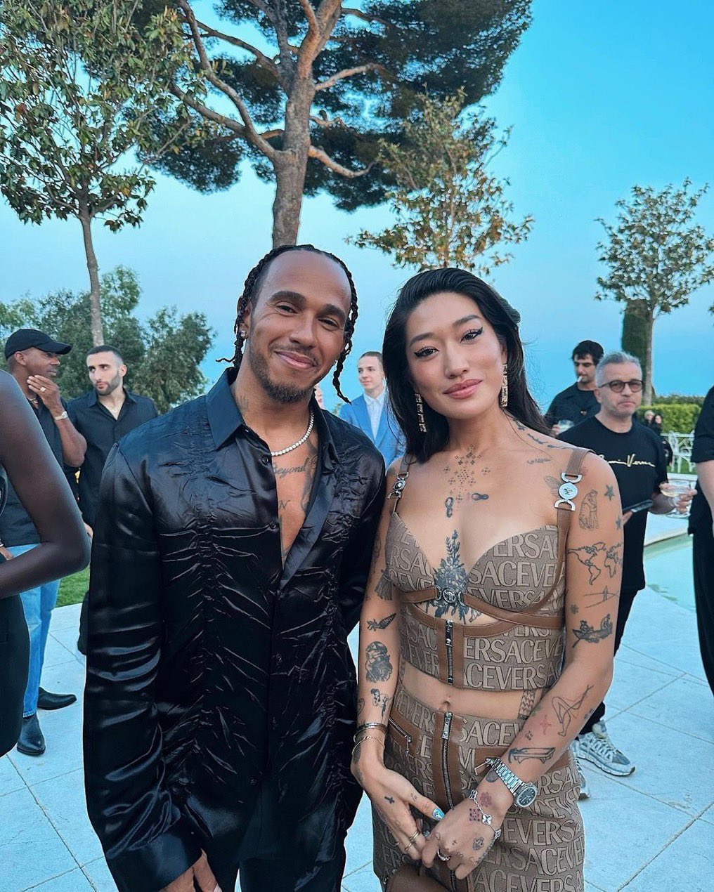 Sir Lewis Hamilton joins Dua Lipa and NBA Star Dwyane Wade in a stylish affair at Versace show in Cannes.
