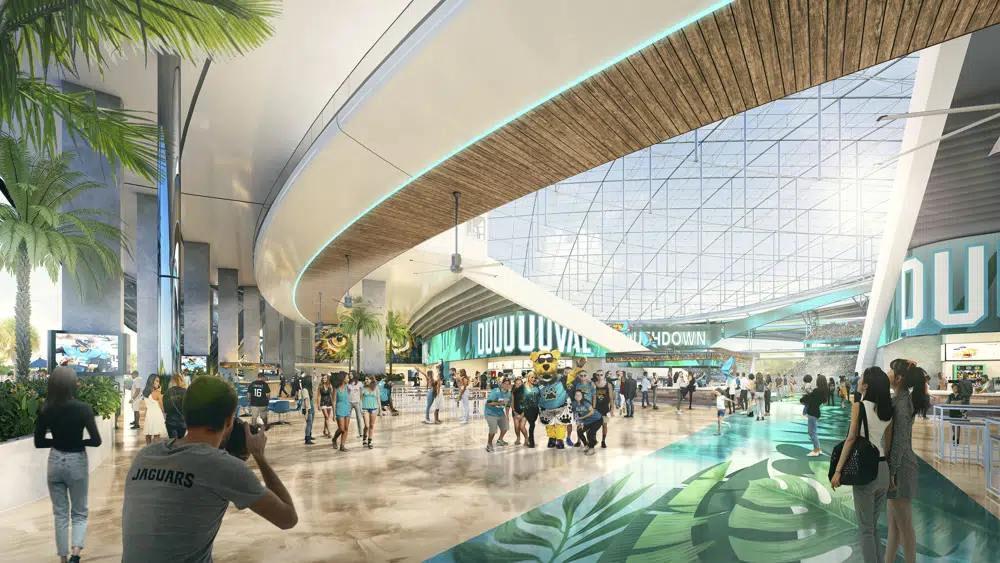The Jaguars on Wednesday released an early look at a renovation of what they're calling "the stadium of the future," a multibillion-dollar project that includes developing the area around TIAA Bank Field and a critical piece of the franchise's future in Jacksonville.