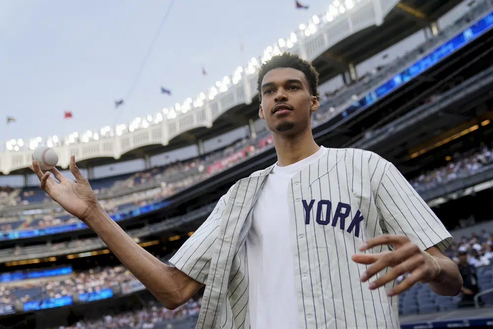 Photos: Victor Wembanyama throws out ceremonial first pitch at Yankee Stadium ahead of NBA draft.